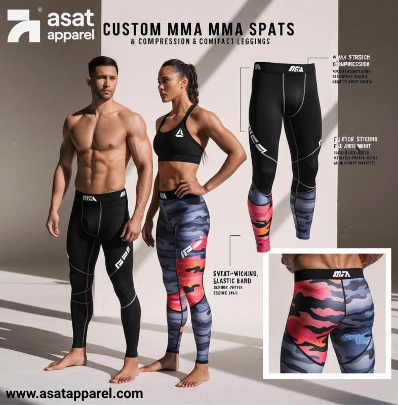 ASAT Apparel International is a leading manufacturer of high-performance Custom MMA Apparel and Gear, specializing in fully customized MMA spats and leggings. We provide limitless customization – from designs, colors, and logos to advanced fabric technology – tailored to fighters, gyms, and brands worldwide.